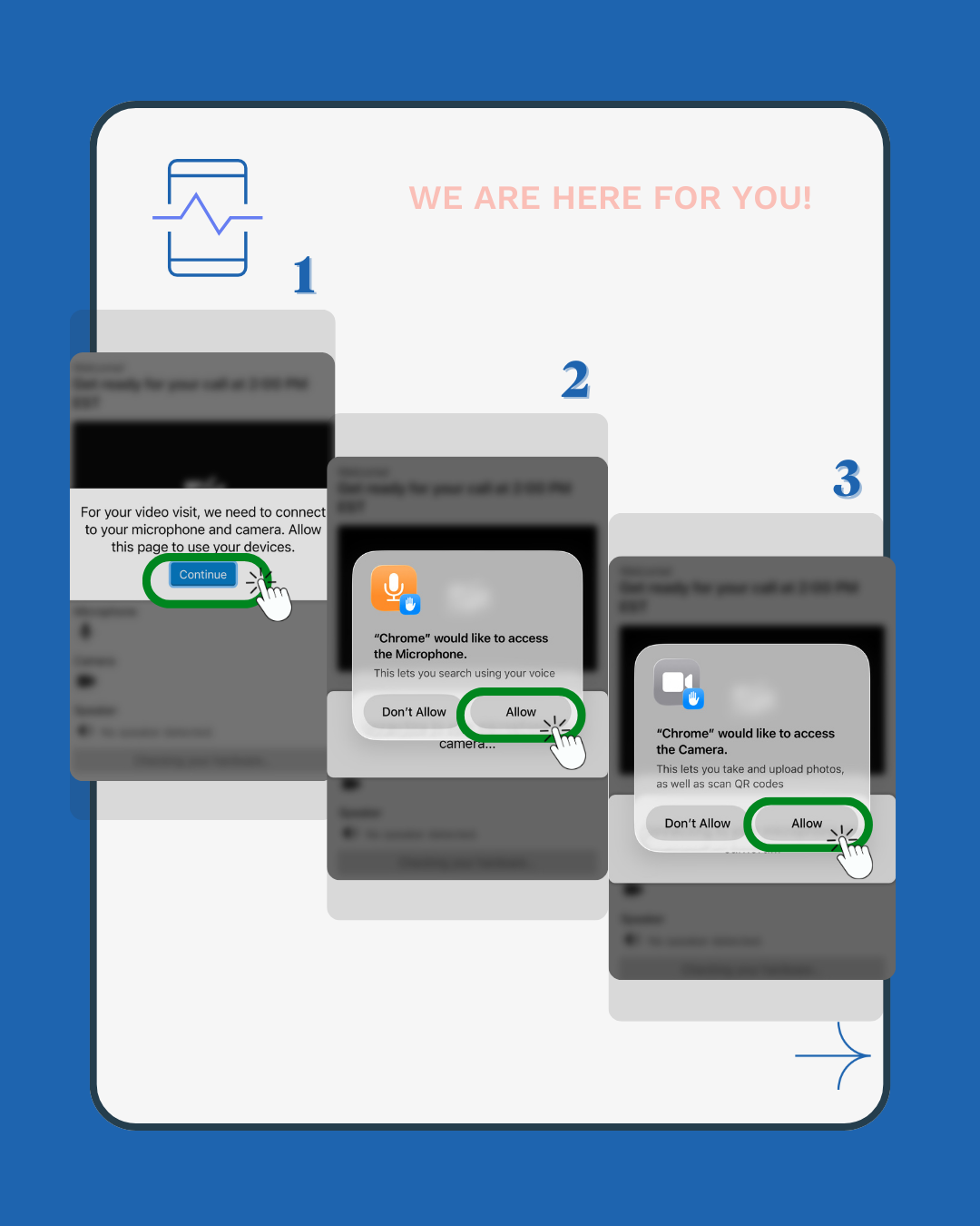 - Position your camera so that you and your provider can be face-to-face.