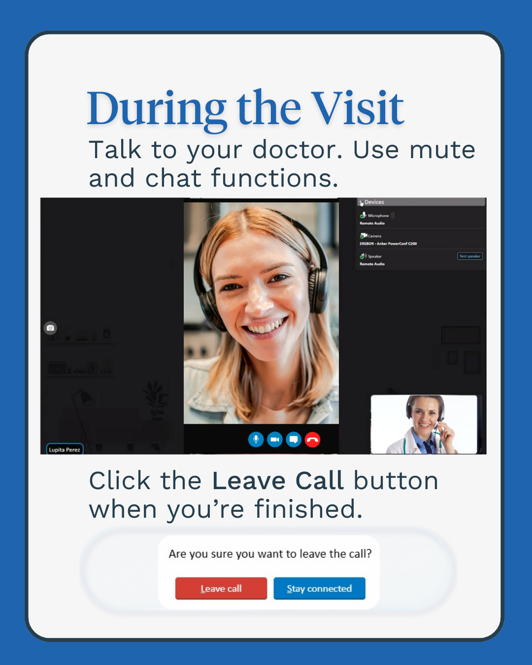 You can speak to your health provider using a secure video visit, or audio-only visit.