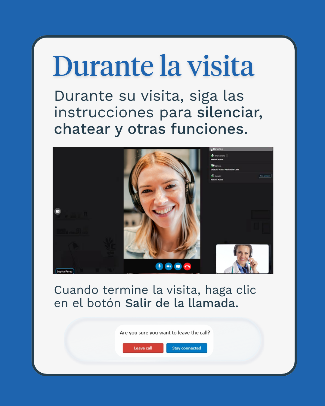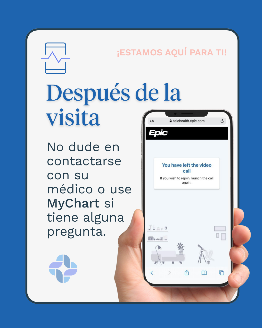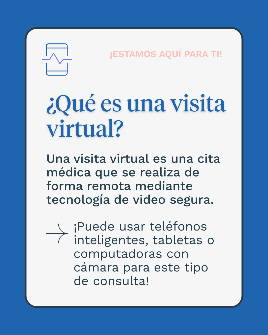Al programar su cita, su doctor le indicará si una visita por video es adecuada para usted.