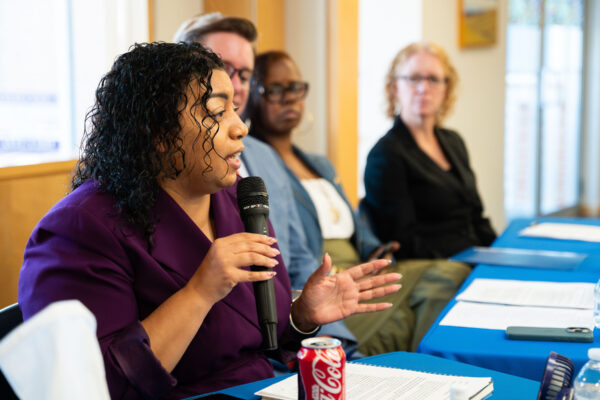 Massachusetts Senator Liz Miranda speaks on NeighborHealth’s State and City panel at Maternal Health Legislation in Action event on October 7 in the South End.